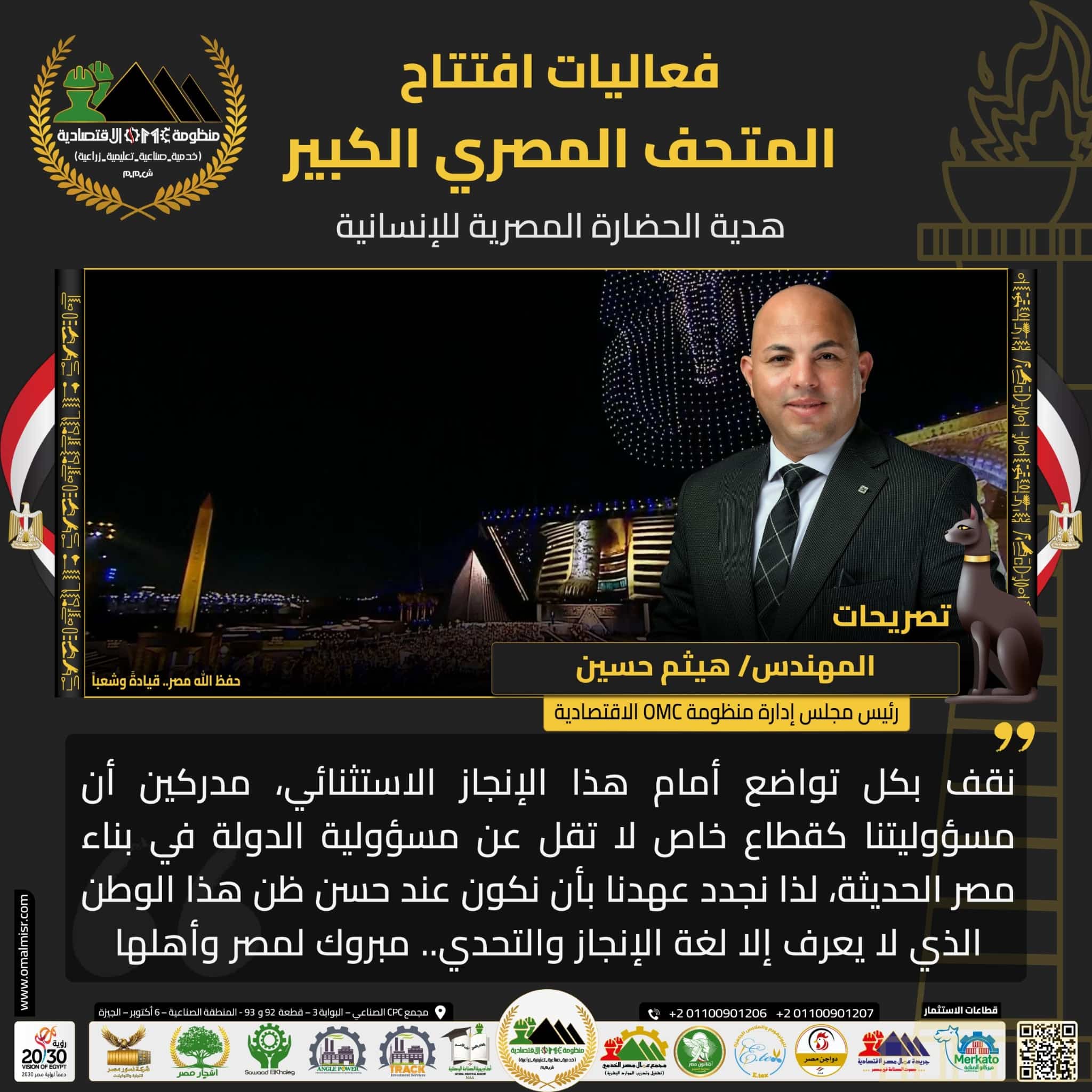 تصريحات المهندس هيثم حسين عقب افتتاح المتحف المصري الكبير
